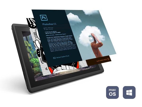 Artisul pen display D16 works smoothly on both Windows and macOS, where you can use designer software of various kinds, including Adobe Photoshop, Illustrator and Corel Painter, etc.