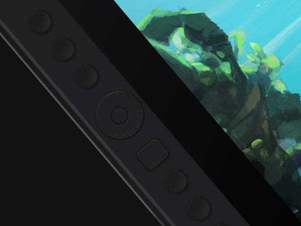 7 express keys and a quick dial are created on pen display D16, which are all programmable via the driver and can be reset to support both left-hand and right-hand users . You can undo changes made to your works, adjust the size of your brush and scroll the page with the quick dial.