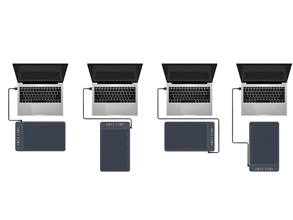Setting up for left-handed users is simple. Rotate the tablet by 180 degrees to position the shortcut keys on your right side, enabling comfortable pen use with your left hand. Additionally, please select the Right mode in the driver panel for optimal configuration.